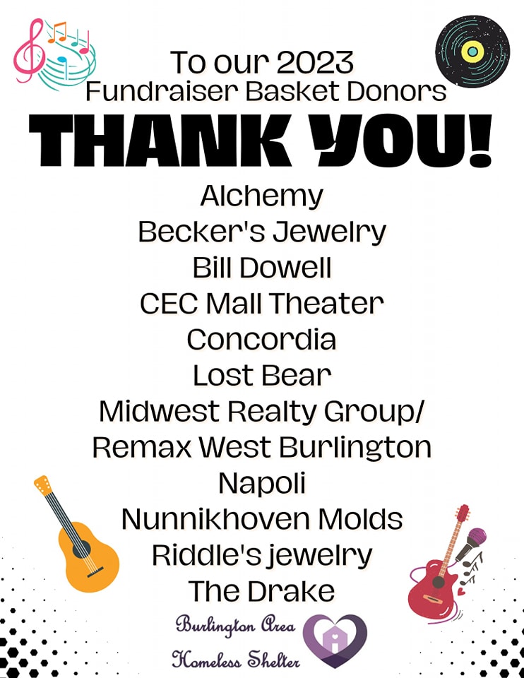 For questions, to purchase a table or ticket, or donate for the silent auction contact the shelter by email or 319-754-6791 or 123 North Marshall St, Burlington, IA 52601.